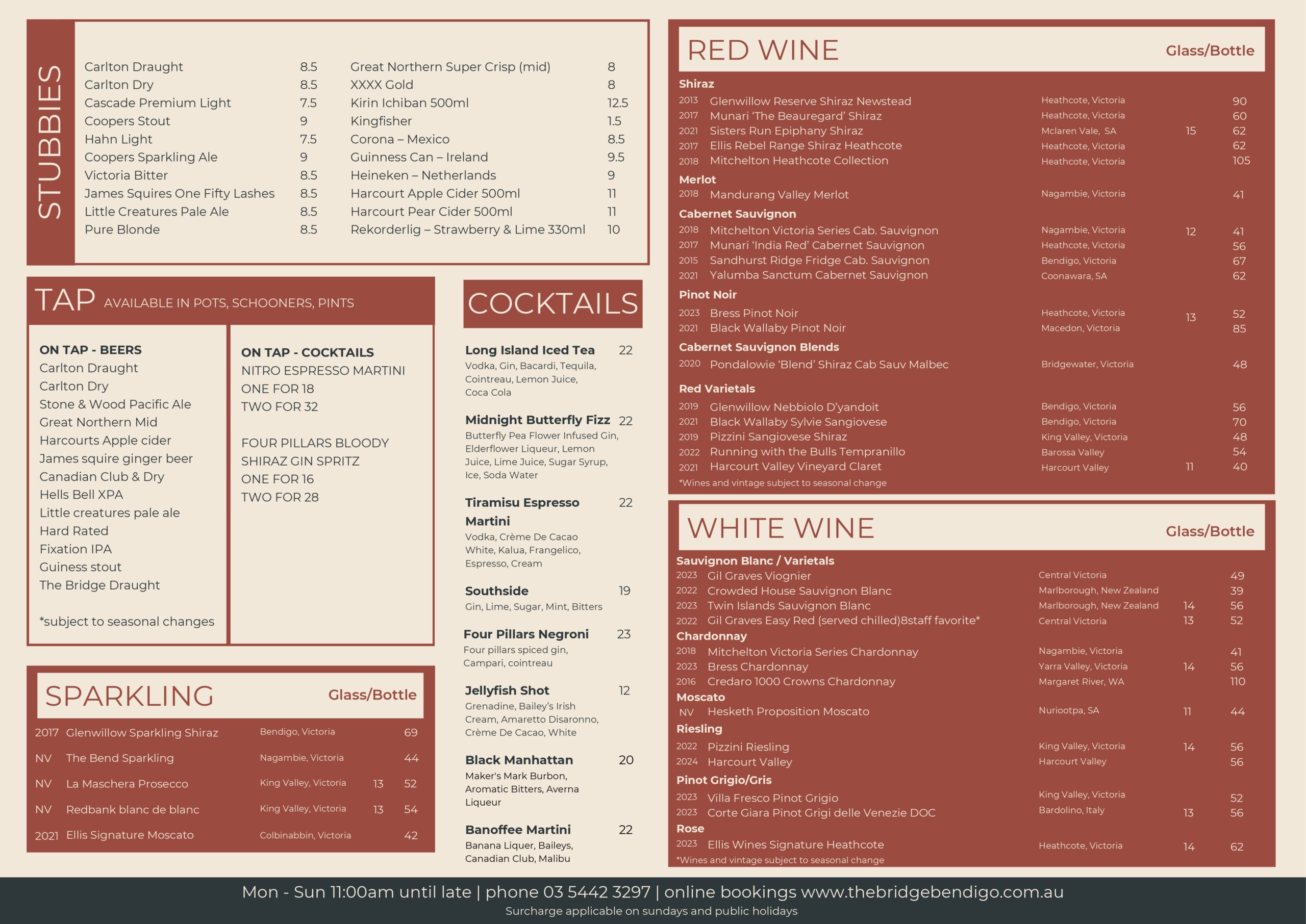 10% surcharge applies on Sundays & 15% on Public Holidays